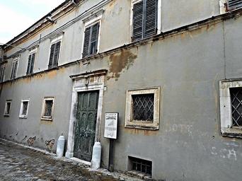 | Keywords: recanati antici-mattei anticimattei giacomo leopardi giacomoleopardi palace marche macerata literature building architecture outdoor road text alley PALAZZO ANTICI-MATTEI A RECANATI dove nacque e si sposò Adelaide Antici, madre di Giacomo Leopardi, da me fotografato il 12 giugno 2016, in una giornata da tregenda, tra diluvio e fretta. Dalla guida TCI "Marche": "L'edificio risale al XVI secolo, ha linee semplici ed eleganti e iscrizioni in latino sulle architravi delle finestre che richiamano il lustro della famiglia, un tempo 'Antiqua' e poi 'Antica'. Dalla casa nativa della marchesa Adelaide Antici, madre del poeta [Giacomo Leopardi], uscirono illustri uomini di armi, di lettere e di fede come Rinaldo, capitano dei crociati, i cardinali Tommaso e Ruggero e Giulio al cui nome è legata l'amministrazione della città di Recanati di oltre mezzo secolo. Il cardinale Tommaso Antici fece costruire di fronte all'ingresso del palazzo una scuderia ornata di un tipico prospetto con alcune statue e busti di epoca romana provenienti dal Circo Flaminio a Roma. Nella galleria del palazzo si sposarono Monaldo e Adelaide". PALAZZO ANTICI-MATTEI A RECANATI dove nacque e si sposò Adelaide Antici, madre di Giacomo Leopardi, da me fotografato il 12 giugno 2016, in una giornata da tregenda, tra diluvio e fretta. Dalla guida TCI "Marche": "L'edificio risale al XVI secolo, ha linee semplici ed eleganti e iscrizioni in latino sulle architravi delle finestre che richiamano il lustro della famiglia, un tempo 'Antiqua' e poi 'Antica'. Dalla casa nativa della marchesa Adelaide Antici, madre del poeta [Giacomo Leopardi], uscirono illustri uomini di armi, di lettere e di fede come Rinaldo, capitano dei crociati, i cardinali Tommaso e Ruggero e Giulio al cui nome è legata l'amministrazione della città di Recanati di oltre mezzo secolo. Il cardinale Tommaso Antici fece costruire di fronte all'ingresso del palazzo una scuderia ornata di un tipico prospetto con alcune statue e busti di epoca romana provenienti dal Circo Flaminio a Roma. Nella galleria del palazzo si sposarono Monaldo e Adelaide". |