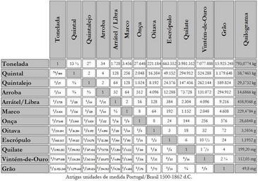 Keywords: Antigas Unidades.JPG en Ancient portuguese measures of mass +/- 1500 to 1862 d C pt Antigas unidades de peso portuguesas usadas em Portugal e no Brasil No Brasil até 1862 own Nerun 12/Outubro/2009 Tables information