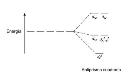 Keywords: Antiprismatico cuadrado.PNG es Diagrama de separación de orbitales en un campo antiprismatico cuadrado own J3D3 Coordination chemistry Computational chemistry Molecular orbitals energy levels