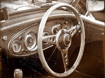 Keywords: antiqued image vintage car interior dashboard instruments steering wheel wooden wood leather vintage car old classic style vehicle old cars retro automobile chrome auto transport transportation retro car design classic cars nostalgia british english antiqued photograph classic car old car veteran car