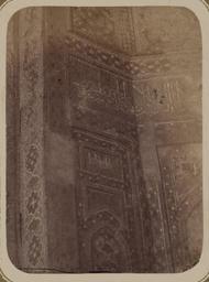 | Keywords: Antiquities of Samarkand. Inner Courtyard of the Shir Dar Madrasah. Southern Side. End WDL3832.png Artwork ru Богаевский иколай Владими ович 1843 1912 гг fr Bogaevskii Nikolaï V 1843-1912 en Bogaevskii Nikolai V 1843-1912 zh 亚历山大·L· ,1840-1888 年 pt Bogaevskii Nikolai V 1843-1912 ar بوغافسكي، نيكولاي ف ، 1843-1912 es Bogaevskii Nikolai V 1843-1912 ru Сама кандские д евности Внут енний дво мед есе Ши -До Южная сто она Конец fr Antiquités de Samarcande Cour intérieure de la madrasa de Shir Dar Côté sud Fin en Antiquities of Samarkand Inner Courtyard of the Shir Dar Madrasah Southern Side End zh 撒马尔罕古迹 尔·达伊斯兰教学校内部庭院 南侧 结 部分 pt Antiguidades de Samarcanda Pátio interno da madrassa Shir Dar Lado sul Fim ar آثار سمرقند الفناء الداخلي لمدرسة شير دار الجهة الجنوبية النهاية ru Эта фотог афия внут еннего дво а мед есе Ши -До в Сама канде Узбекистан соде жится в а хеологической части <em> Ту кестанского альбома </em> Шеститомное фотог афическое исследование было подготовлено и издано в 1871 1872 гг под пат онажем гене ала Константина П фон Кауфмана пе вого гене ал-губе нато а 1867 1882 гг Ту кестана как называли в то в емя те ито ию Цент альной Азии п инадлежавшую Российской импе ии В альбоме уделяется особое внимание исламской а хитекту е Сама канда в том числе памятникам XIV и XV вв пе иода п авления Тиму а Таме лана и его п еемников В цент е Сама канда находится ансамбль Регистан объединяющий в себе т и основных об азца <em>madrasah</em> мед есе елигиозных школ Вто ое мед есе в ансамбле Ши -До было пост оено в 1619 1636 гг во в емена династии Ашта ханидов есмот я на значительные пов еждения нанесенные мед есе в течение многих веков оно остается одним из самых богато ук ашенных памятников в Цент альной Азии Фо ма этого мед есе является типичной для егиона п ямоугольный дво ок уженный двухэтажной а кадой а этом снимке углубления или ниши в конце южной стены показана сложность деко ативной ке амической аботы сочетающей замысловатые геомет ические и ботанические узо ы из многоцветной плитки ад панелью ст ельчатой а ки находятся го изонтальные полосы с надписями в укописном стиле сулюс аве ху под сводом а ки виден яд панелей <br>А хитекту ные ук ашения и деко ативные элементы; адписи; Исламская а хитекту а; ед есе; Фотог афические исследования fr Cette photographie de l'intérieur de la cour de la madrasa de Shir Dar à Samarcande Ouzbékistan est extraite de l'ouvrage archéologique <em>Album du Turkestan</em> Cet inventaire photographique en six volumes fut réalisé entre 1871 et 1872 sous le patronage du général Konstantin P von Kaufman premier gouverneur général 1867-1882 du Turkestan nom donné aux territoires d'Asie centrale de l'Empire russe L'album consacre une attention particulière à l'architecture islamique de Samarcande avec notamment des monuments datant des XIV<sup>e</sup> et XV<sup>e</sup> siècles lors du règne de Tamerlan et de ses successeurs Situé au centre de Samarcande l'ensemble du Registan est composé de trois exemples majeurs de <em>madrasa</em> école religieuse La madrasa de Shir Dar seconde de l'ensemble fut construite entre 1619 et 1636 au cours de la dynastie astrakane Malgré les dommages considérables subis au cours des siècles elle demeure l'un des monuments les plus luxueusement décorés d'Asie centrale Typique de la région cette madrasa est formée d'une cour rectangulaire entourée d'une arcade à deux étages Cette vue d'une saillie ou niche encastrée à l'extrémité du mur sud dénote la complexité des céramiques décoratives composées de carreaux polychromes formant des motifs géométriques et à fleurs Des bandes d'inscription horizontales en style cursif thoulouth sont visibles au-dessus du panneau de l'arceau pointu Dans la partie supérieure une rangée de panneaux apparaît au-dessous de la voûte <br>Décorations et ornements architecturaux; Inscriptions; Architecture islamique; Madrasas; Inventaires photographiques en This photograph of the interior courtyard of the Shir Dar Madrasah in Samarkand Uzbekistan is from the archeological part of <em>Turkestan Album</em> The six-volume photographic survey was produced in 1871-72 under the patronage of General Konstantin P von Kaufman the first governor-general 1867-82 of Turkestan as the Russian Empire s Central Asian territories were called The album devotes special attention to Samarkand s Islamic architecture such as 14th- and 15th-century monuments from the reign of Timur Tamerlane and his successors In the center of Samarkand is the Registan ensemble composed of three major examples of a <em>madrasah</em> religious s