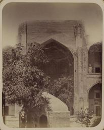 | Keywords: Antiquities of Samarkand. Inner Courtyard of the Shir Dar Madrasah (Northern Side). Inscription to the Right of the Niche WDL3797.png Artwork ru Богаевский иколай Владими ович 1843 1912 гг fr Bogaevskii Nikolaï V 1843-1912 en Bogaevskii Nikolai V 1843-1912 zh 亚历山大·L· ,1840-1888 年 pt Bogaevskii Nikolai V 1843-1912 ar بوغافسكي، نيكولاي ف ، 1843-1912 es Bogaevskii Nikolai V 1843-1912 ru Сама кандские д евности Внут енний дво мед есе Ши -До севе ная сто она адпись с п авой сто оны ниши fr Antiquités de Samarcande Cour intérieure de la madrasa de Shir Dar côté nord Côté droit de la niche en Antiquities of Samarkand Inner Courtyard of the Shir Dar Madrasah Northern Side Inscription to the Right of the Niche zh 撒马尔罕古迹 尔·达伊斯兰教学校内部庭院(北侧) 壁龛右侧的铭文 pt Antiguidades de Samarcanda Pátio interno da madrassa Shir Dar lado norte Inscrição à direita do nicho ar آثار سمرقند الفناء الداخلي لمدرسة شير دار الجهة الشمالية نقوش إلى يمين المِشْكاة ru Эта фотог афия внут еннего дво а мед есе Ши -До в Сама канде Узбекистан соде жится в а хеологической части <em> Ту кестанского альбома </em> Шеститомное фотог афическое исследование было п оведено в 1871 1872 гг под уководством гене ала Константина П фон Кауфмана пе вого гене ал-губе нато а 1867 1882 гг Ту кестана как называли те ито ию Цент альной Азии п инадлежавшую Российской импе ии В альбоме уделяется особое внимание исламской а хитекту е Сама канда в том числе памятникам XIV и XV вв пе иода п авления Тиму а Таме лана и его п еемников В цент е Сама канда находится ансамбль Регистан объединяющий в себе т и основных об азца <em>madrasah</em> мед есе елигиозных школ Вто ое мед есе в ансамбле Ши -До было пост оено в 1619 1636 гг во в емена династии Ашта ханидов есмот я на значительные пов еждения нанесенные мед есе в течение многих веков оно остается одним из самых богато ук ашенных памятников в Цент альной Азии Фо ма этого мед есе является типичной для егиона п ямоугольный дво ок уженный двухэтажной а кадой кото ая соде жит комнаты для ученых Здесь изоб ажена а ка <em>iwan</em> сводчатый зал с одним отк ытым концом ок уженный с т ех сто он стенами находящаяся в цент е севе ной стены вместе с одним п яслом а кады сп ава Пове хности изначально были пок ыты многоцветной плиткой майоликой создающей геомет ические и ботанические узо ы Айван об амлен деко ативными полосами геомет ических мотивов а также ши окой полосой соде жащей надписи в укописном стиле сулюс <br>Исламская а хитекту а; ед есе; иши; Фотог афические исследования fr Cette photographie de l'intérieur de la cour de la madrasa de Shir Dar à Samarcande Ouzbékistan est extraite de l'ouvrage archéologique <em>Album du Turkestan</em> Cet inventaire photographique en six volumes fut réalisé entre 1871 et 1872 sous le patronage du général Konstantin P von Kaufman premier gouverneur général 1867-1882 du Turkestan nom donné aux territoires d'Asie centrale de l'Empire russe L'album consacre une attention particulière à l'architecture islamique de Samarcande avec notamment des monuments datant des XIV<sup>e</sup> et XV<sup>e</sup> siècles lors du règne de Tamerlan et de ses successeurs Situé au centre de Samarcande l'ensemble du Registan est composé de trois exemples majeurs de <em>madrasa</em> école religieuse La seconde madrasa de l'ensemble celle de Shir Dar fut construite entre 1619 et 1636 au cours de la dynastie astrakane Malgré les dommages considérables subis au cours des siècles elle demeure l'un des monuments les plus luxueusement décorés d'Asie centrale Typique de la région cette madrasa est formée d'une cour rectangulaire entourée d'une arcade à deux étages qui contient des salles réservées aux érudits L'arceau de l'<em>aivan</em> salle voûtée dotée de trois murs et d'un côté ouvert est visible ici au centre du mur nord avec une saillie de l'arcade à droite l'origine les surfaces étaient recouvertes de carreaux de majolique polychromes formant des motifs géométriques et à fleurs Des bandes décoratives de motifs géométriques à fleurs et une bande d'inscription plus large en style cursif thulutte encadrent l'aivan <br>Architecture islamique; Madrasas; Niches; Inventaires photographiques en This photograph of the interior courtyard of the Shir Dar Madrasah in Samarkand Uzbekistan is from the archeological part of <em>Turkestan Album</em> The six-volume photographic survey was produced in 1871-72 under the patronage of General Konstantin P von Kaufman the first governor-general 1867-82 of Turkestan as the Russian Em