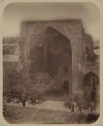 | Keywords: Antiquities of Samarkand. Madrasah of Ulugh Beg. Entrance to the Congregational Mosque WDL3864.png Artwork ru Богаевский иколай Владими ович 1843 1912 гг fr Bogaevskii Nikolaï V 1843-1912 en Bogaevskii Nikolai V 1843-1912 zh 亚历山大·L· ,1840-1888 年 pt Bogaevskii Nikolai V 1843-1912 ar بوغافسكي، نيكولاي ف ، 1843-1912 es Bogaevskii Nikolai V 1843-1912 ru Сама кандские д евности ед есе Улугбека Вход в собо ную мечеть fr Antiquités de Samarcande Madrasa d'Ulugh Beg Entrée de la mosquée de congrégation en Antiquities of Samarkand Madrasah of Ulugh Beg Entrance to the Congregational Mosque zh 撒马尔罕古迹 鲁伯· 格伊斯兰教学校 大清 寺入口 pt Antiguidades de Samarcanda Madrassa de Ulugh Beg Entrada para a mesquita congregacional ar آثار سمرقند مدرسة أُلوك بيك مدخل المسجد الجامِع ru Эта фотог афия мечети в мед есе Улугбека в Сама канде Узбекистан соде жится в а хеологической части <em> Ту кестанского альбома </em> Шеститомное фотог афическое исследование было подготовлено и издано в 1871 1872 гг под пат онажем гене ала Константина П фон Кауфмана пе вого гене ал-губе нато а 1867 1882 гг Ту кестана как называли в то в емя те ито ию Цент альной Азии п инадлежавшую Российской импе ии В альбоме уделяется особое внимание исламской а хитекту е Сама канда в том числе памятникам XIV и XV вв пе иода п авления Тиму а Таме лана и его п еемников В цент е Сама канда находится ансамбль Регистан объединяющий в себе т и основных об азца <em>мед есе</em> елигиозных школ Самое ста ое мед есе площади Регистан названо в честь Улугбека п авителя-аст онома 1393 1449 гг и внука Тиму а кото ый пост оил его в 1417 1420 гг Во в емя п авления Улугбека в мед есе училось около 100 учеников и оно считалось ведущим цент ом исламского об азования а фотог афии показана а ка <em>айвана</em> сводчатого зала с одним отк ытым концом ок уженного с т ех сто он стенами мечети асположенная в западной стене дво а мед есе есмот я на се ьезные ст укту ные пов еждения ве оятно в езультате землет ясений кото ые п ивели к ут ате ке амической пове хности в ве хней части айвана на фасадах сох анились большие ф агменты многоцветных ук ашений сочетающие геомет ические и ботанические мотивы А ка об амлена ке амическими колоннами а по внешнему к аю айвана идут богато ук ашенные ве тикальные полосы С обеих сто он айвана видны остатки двухэтажной к ытой гале еи с комнатами для ученых <br>Две и и две ные п оемы; Исламская а хитекту а; ечети; Фотог афические исследования fr Cette photographie de la mosquée de la madrasa d'Ulugh Beg à Samarcande Ouzbékistan est extraite de l'ouvrage archéologique <em>Album du Turkestan</em> Cet inventaire photographique en six volumes fut réalisé entre 1871 et 1872 sous le patronage du général Konstantin P von Kaufman premier gouverneur général 1867-1882 du Turkestan nom donné aux territoires d'Asie centrale de l'Empire russe L'album consacre une attention particulière à l'architecture islamique de Samarcande avec notamment des monuments datant des XIV<sup>e</sup> et XV<sup>e</sup> siècles lors du règne de Tamerlan et de ses successeurs Situé au centre de Samarcande l'ensemble du Registan est composé de trois exemples majeurs de <em>madrasa</em> école religieuse La madrasa la plus ancienne sur la place du Registan est nommée d'après le roi-astronome et petit-fils de Tamerlan Ulugh Beg 1393 env -1449 qui la construisit entre 1417 et 1420 Pendant le règne d'Ulugh Beg la madrasa centre important de l'éducation islamique comptait près de 100 étudiants Cette vue présente l'arceau de l'<em>aivan</em> salle voûtée dotée de trois murs et d'un côté ouvert de la mosquée sur le mur ouest de la cour de la madrasa Malgré les dommages considérables de la structure vraisemblablement dus aux tremblements de terre notamment la perte des céramiques recouvrant la surface de la partie supérieure de l'aivan les façades arborent encore de grands fragments de décoration polychrome mélangeant motifs géométriques et à fleurs Des colonnes de céramique encadrent l'arceau et des bandes verticales richement ornementées décorent les bords extérieurs de l'aivan Les vestiges d'une arcade à deux étages contenant jadis les salles réservées aux érudits sont visibles de part et d'autre de l'aivan <br>Portes et seuils; Architecture islamique; Mosquées; Inventaires photographiques en This photograph of the mosque at the Ulugh Beg Madrasah in Samarkand Uzbekistan is from the archeological part of <em>Turkestan Album</em> The six-volume photographic survey was produced i