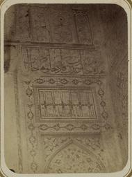 | Keywords: Antiquities of Samarkand. Mausoleum of the Emir Timur Kuragan (Gur-Emir). Inscription along the Sides and inside the Main Entry Niche WDL3724.png Artwork ru Богаевский иколай Владими ович 1843 1912 гг fr Bogaevskii Nikolaï V 1843-1912 en Bogaevskii Nikolai V 1843-1912 zh 亚历山大·L· ,1840-1888 年 pt Bogaevskii Nikolai V 1843-1912 ar بوغافسكي، نيكولاي ف ، 1843-1912 es Bogaevskii Nikolai V 1843-1912 ru Сама кандские д евности авзолей эми а Тиму а Ку агана Гу -Эми адписи по сто онам и внут и главной входной ниши fr Antiquités de Samarcande Mausolée de l'émir Timour Kuragan Gour Emir Inscription le long des côtés et à l'intérieur de la niche de l'entrée principale en Antiquities of Samarkand Mausoleum of the Emir Timur Kuragan Gur-Emir Inscription along the Sides and inside the Main Entry Niche zh 撒马尔罕古迹 埃米尔帖 儿·库拉甘的陵墓(古尔-埃米尔) 主入口壁龛外侧与内侧的铭文 pt Antiguidades de Samarcanda Mausoléu de Tamerlão Gur-Emir Inscrição nas laterais e dentro do nicho da entrada principal ar آثار سمرقند ضريح الأمير تيمور كوراغان گورِ أمير نقش بطول الجانبين وداخل مِشْكاة المدخل الرئيسي ru Эта фотог афия детали главной входной а ки во дво мавзолея Гу -Эми в Сама канде Узбекистан соде жится в а хеологической части <em> Ту кестанского альбома </em> Шеститомное фотог афическое исследование было подготовлено и издано в 1871 1872 гг под пат онажем гене ала Константина П фон Кауфмана пе вого гене ал-губе нато а 1867 1882 гг Ту кестана как называли в то в емя те ито ию Цент альной Азии п инадлежавшую Российской импе ии В альбоме уделяется особое внимание исламскому а хитекту ному наследию Сама канда включая Гу -Эми на пе сидском языке означает г обница повелителя Гу -Эми известен в пе вую оче едь как место захо онения Тиму а Таме лана хотя Тиму начал его ст оительство еще в 1403 г в память своего любимого внука ухаммада Султана уме шего в воз асте 27 лет После похо он Тиму а в 1405 г Гу -Эми стал мавзолеем Тиму идов а фотог афии видно левое к ыло а ки входной ниши <em>айвана</em> сводчатый зал с одним отк ытым концом ок уженный с т ех сто он стенами Хотя фасад пост адал здесь п едставлены азнооб азные многоцветные ке амические ук ашения асположенные на четы ех у овнях Панель ст ельчатой а ки в нижней части соде жит цветочные мотивы внут и сложного геомет ического узо а а панели над ней изоб ажена деко ативная сетка с цветочными элементами а следующей панели видна пе сидско-а абская надпись удлиненным письмом пе емежающаяся с цветочными узо ами а ве хнем у овне находится го изонтальная полоса из фаянсовых сегментов с лучистыми цветочными фигу ами <br>А хитекту ные ук ашения и деко ативные элементы; адписи; Исламская а хитекту а; Фотог афические исследования; огильные памятники; Тиму 1336-1405 гг ; Г обницы fr Cette photographie des détails de l'arceau de l'entrée principale menant vers la cour du mausolée de Gour Emir à Samarcande Ouzbékistan est extraite de l'ouvrage archéologique <em>Album du Turkestan</em> Cet inventaire photographique en six volumes fut réalisé entre 1871 et 1872 sous le patronage du général Konstantin P von Kaufman premier gouverneur général 1867-1882 du Turkestan nom donné aux territoires d'Asie centrale de l'Empire russe L'album consacre une attention particulière à l'héritage de l'architecture islamique de Samarcande notamment Gour Emir « tombe du souverain » en persan Bien qu'il soit principalement connu comme le lieu de sépulture de Tamerlan Gour Emir fut commencé sous Tamerlan en 1403 pour commémorer la mort de son petit-fils bien-aimé le sultan Mahomet à l'âge de 27 ans Lorsque Tamerlan y fut enterré en 1405 Gour Emir devint le mausolée des Timourides Cette vue présente le flanc gauche de la niche située dans l'arceau de l'<em>aivan </em> salle voûtée dotée de trois murs et d'un côté ouvert de la structure d'entrée Malgré les dommages sur la façade les quatre niveaux dans cette vue présentent des ornements en céramique polychrome variés Dans la partie inférieure le panneau de lambris est décoré de figures à fleurs disposées dans des motifs géométriques sophistiqués Au-dessus le panneau contient une grille décorative et des éléments floraux Le dernier panneau est doté d'une inscription perso-arabe en caractères allongés entrelacés de motif à fleurs Une bande horizontale composée de segments de faïence avec des figures à fleurs rayonnantes occupe la partie supérieure de la photo