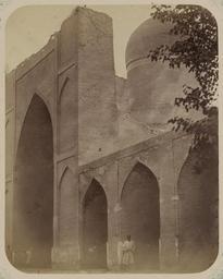 | Keywords: Antiquities of Samarkand. Namazga Mosque. Section of the Main Facade WDL3751.png Artwork ru Богаевский иколай Владими ович 1843 1912 гг fr Bogaevskii Nikolaï V 1843-1912 en Bogaevskii Nikolai V 1843-1912 zh 亚历山大·L· ,1840-1888 年 pt Bogaevskii Nikolai V 1843-1912 ar بوغافسكي، نيكولاي ف ، 1843-1912 es Bogaevskii Nikolai V 1843-1912 ru Сама кандские д евности ечеть амазга Часть главного фасада fr Antiquités de Samarcande Mosquée de Namazga Section de la façade principale en Antiquities of Samarkand Namazga Mosque Section of the Main Facade zh 撒马尔罕古迹 那玛伽清 寺 主立 部分 pt Antiguidades de Samarcanda Mesquita Namazga Seção da fachada principal ar آثار سمرقند مسجد نمازغا قطاع من الواجهة الرئيسية ru Эта впечатляющая фотог афия мечети амазга в Сама канде Узбекистан соде жится в а хеологической части <em> Ту кестанского альбома </em> Шеститомное фотог афическое исследование было подготовлено и издано в 1871 1872 гг под пат онажем гене ала Константина П фон Кауфмана пе вого гене ал-губе нато а 1867 1882 гг Ту кестана как называли в то в емя те ито ию Цент альной Азии п инадлежавшую Российской импе ии В альбоме уделяется особое внимание исламскому а хитекту ному наследию Сама канда ечеть <em>намазга</em> была п едназначена для п азднования Ид аль-Фит а п аздника кото ый отмечается в конце месяца Рамадана а также Ку бана или Ид аль-Адха п аздника же твоп иношения Пост оенная ве оятно еще в XI веке и восстановленная Тиму идами в XV веке мечеть амазга была пе ест оена в пе вой половине XVII века ади ом Диван-Беги визи ем и дядей буха ского п авителя Иман-Кули Хана Расположенная на южной ок аине го ода данная мечеть амазга была заве шена п име но в 1630-х гг Сп ава виден высокий цент альный купол п иподнятый на большом цилинд е или ба абане ук ашенном каймой из ке амической плитки В цент е фасада асположена а ка <em>айвана</em> сводчатого зала с одним отк ытым концом ок уженного с т ех сто он стенами об амляющая вход в мечеть Цент альное ст оение ок ужено одноэтажными сводчатыми гале еями азме ы кото ых можно оп еделить по стоящей человеческой фигу е В отличие от д угих мечетей того пе иода фасады мечети амазга почти не несут следов ке амических ук ашений <br>Исламская а хитекту а; ечети; Фотог афические исследования fr Cette photographie impressionnante de la mosquée de Namazga à Samarcande Ouzbékistan est extraite de l'ouvrage archéologique <em>Album du Turkestan</em> Cet inventaire photographique en six volumes fut réalisé entre 1871 et 1872 sous le patronage du général Konstantin P von Kaufman premier gouverneur général 1867-1882 du Turkestan nom donné aux territoires d'Asie centrale de l'Empire russe L'album consacre une attention particulière à l'héritage de l'architecture islamique de Samarcande Une mosquée <em>namazga</em> était destinée à marquer l'Aïd al-Fitr fête célébrée à la fin du jeûne du ramadan ainsi que le Kurban ou l'Aïd al-Adha la fête du sacrifice Probablement construite au XI<sup>e</sup> siècle puis reconstruite par les Timourides au XV<sup>e</sup> la mosquée de Namazga fut remplacée lors de la première moitié du XVII<sup>e</sup> siècle par Nadir Divan-Begi vizir et oncle du souverain de Boukhara Imam-Quli Khan Située au sud de la ville cette version de la mosquée de Namazga fut achevée en 1630 environ Sur la droite le haut dôme principal est élevé sur un immense cylindre ou tambour décoré de bandes de carreaux de céramique Au centre de la façade l'arceau de l'<em>aivan</em> salle voûtée dotée de trois murs et d'un côté ouvert encadre l'entrée de la mosquée La structure centrale est entourée de galeries en arcade à un étage et la personne debout donne une idée de leur taille Contrairement aux autres mosquées de l'époque les façades de la mosquée de Namazga arborent peu d'ornements en céramique <br>Architecture islamique; Mosquées; Inventaires photographiques en This dramatic photograph of the Namazga Mosque in Samarkand Uzbekistan is from the archeological part of <em>Turkestan Album</em> The six-volume photographic survey was produced in 1871-72 under the patronage of General Konstantin P von Kaufman the first governor-general 1867-82 of Turkestan as the Russian Empire s Central Asian territories were called The album devotes special attention to Samarkand s Islamic architectural heritage A <em>namazga</em> mosque was intended to mark Eid al-Fitr a holiday observed at the end of the Ramadan fast as well as Kurban or Eid al-Adha the Festival of Sacrifice Built perhaps as early as the 11th century and rebuilt by the Timurids in the 15th century the Namazga Mosq