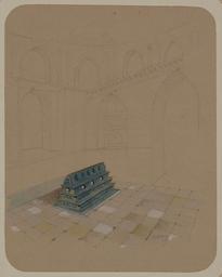 | Keywords: Antiquities of Samarkand. Tomb of the Saint Kusam-ibn-Abbas (Shah-i Zindah) and Adjacent Mausoleums. Grave Where the Sepulcher of the Saint Stands WDL3572.png Artwork ru Шостак Л А fr Shostak L A en Shostak L A zh L A ·斯塔克 pt Shostak L A ar شوستاك، ل أ es Shostak L A ru Сама кандские д евности Г обница святого Куссама ибн Абасса Шах-Зиндэ и мавзолеи п и ней огила в кото ой стоит г обница святого огила святого Куссама ибн Абасса Шах-Зиндэ уме шего в 57 г хидж ы fr Antiquités de Samarcande Sépulcre de Kusam-ibn-Abbas Shah-i Zindah et mausolées adjacents Tombe de la sépulture du vénérable Tombe de Kusam-ibn-Abbas à Shah-i Zindah mort en 57 A H en Antiquities of Samarkand Tomb of the Saint Kusam-ibn-Abbas Shah-i Zindah and Adjacent Mausoleums Grave Where the Sepulcher of the Saint Stands Grave of the Saint Kusam-ibn-Abbas Shah-i Zindah Who Died in 57 A H zh 撒马尔罕古迹 库萨姆-伊 -阿巴斯墓 及陵墓群(夏伊辛达) 卒于伊斯兰历 57 年的 库萨姆-伊 -阿巴斯埋葬于此 pt Antiguidades de Samarcanda Túmulo do Santo Kusam-ibn-Abbas Shakhi Zinda e mausoléus adjacentes Sepultura onde está o sepulcro do santo Sepultura do Santo Kusam-ibn-Abbas Shakhi Zinda falecido em 57 A H ar آثار سمرقند ضَرِيح الوَلِيّ قثم بن عباس شاه زنده والأضرحة المجاورة القبر الذي يوجد فيه مدفن الوَلّي قَبْر الوَلِيّ قثم بن عباس شاه زنده الذي توفي عام 57 هجرياً ru Этот исунок внут енней части мавзолея Куссама ибн Абасса асположенного в севе ной г уппе г обниц нек ополя Шах-Зиндэ в Сама канде соде жится в а хеологической части <em> Ту кестанского альбома </em> Шеститомное фотог афическое исследование было п оведено в 1871 1872 гг под уководством гене ала Константина П фон Кауфмана пе вого гене ал-губе нато а 1867 1882 гг Ту кестана как называли те ито ию Цент альной Азии п инадлежавшую Российской импе ии В альбоме уделяется особое внимание исламской а хитекту е Сама канда в том числе памятникам XIV и XV вв пе иода п авления Тиму а Таме лана и его п еемников Ансамбль Шах-Зиндэ на пе сидском языке означает живой ца ь почитается как мемо иал Куссама ибн Абасса двою одного б ата п о ока ухаммада Согласно ве ованиям после того как Куссам ибн Абасса был убит во в емя нападения а абов в 673 г его похо онили на этом месте П едположительно его могила находится в части мавзолея известной как <em>гу хана</em> или усыпальница а исунке изоб ажены оче тания стен на пе еднем плане показан ступенчатый са кофаг начала XIV века богато ук ашенный майоликой В дополнение к цветочному о наменту на пове хности са кофага сделана надпись Павших на пути к Аллаху не считайте ме твыми ет они живы Также отмечен год 57 г хидж ы по мусульманскому календа ю или 676 677 гг н э Рисунок подписан художником Л А Шостаком <br>Куссам ибн Абасса; Са кофаги; огильные памятники; Шах-Зиндэ fr Ce dessin de l'intérieur du mausolée de Kusam-ibn-Abbas situé au nord de l'ensemble des sanctuaires de la nécropole de Shah-i Zindah à Samarcande est extrait de l'ouvrage archéologique <em>Album du Turkestan</em> Cet inventaire photographique en six volumes fut réalisé entre 1871 et 1872 sous le patronage du général Konstantin P von Kaufman premier gouverneur général 1867-1882 du Turkestan nom donné aux territoires d'Asie centrale de l'Empire russe L'album consacre une attention particulière à l'architecture islamique de Samarcande avec notamment des monuments datant des XIV<sup>e</sup> et XV<sup>e</sup> siècles lors du règne de Tamerlan et de ses successeurs L'ensemble de Shah-i Zindah « roi vivant » en persan est un mémorial dédié à la vénération de Kusam-ibn-Abbas cousin du prophète Mahomet Selon les croyants il fut enterré sur ce site après avoir été tué lors d'une attaque lancée par les arabes en 673 Il y a lieu de croire que la partie du mausolée connue sous le nom de <em>gurkhana</em> ou sépulture renferme sa tombe Le dessin indique les contours des murs tandis que le sarcophage début du XIV<sup>e</sup> siècle doté de marches et richement décoré avec des carreaux de majolique apparaît au premier plan Outre l'ornement floral on peut lire sur la surface l'inscription « Ne dites pas de ceux qui sont tués sur le chemin d'Allah qu'ils sont morts Non ils sont vivants » L'an 57 A H calendrier islamique ou 676-677 apr J -C apparaît également Le dessin est signé par l'artiste L A Shostak <br>Kusam-ibn-Abbas; Sarcophages; Monuments funéraires; Shāh-i Zindah en This sketch of the interior of the Kusam-ibn-Abbas Mausoleum in the northern cluster of shrines at the Shah-i Zindah necropolis in Samarkand is from the ar