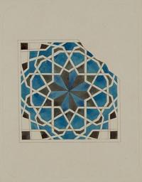 | Keywords: Antiquities of Samarkand. Tomb of the Saint Kusam-ibn-Abbas (Shah-i Zindah) and Adjacent Mausoleums. Mausoleum of Sha Arap. Section of Wall Detail WDL3919.png Artwork ru Шостак Л А fr Shostak L A en Shostak L A zh L A ·斯塔克 pt Shostak L A ar شوستاك، ل أ es Shostak L A ru Сама кандские д евности Г обница святого Куссама ибн Абасса Шах-Зиндэ и мавзолеи п и ней авзолей Ша-А ап Часть отделки стены fr Antiquités de Samarcande Sépulcre de Kusam-ibn-Abbas Shah-i Zindah et mausolées adjacents Mausolée de Sha Arap Section d un détail du mur en Antiquities of Samarkand Tomb of the Saint Kusam-ibn-Abbas Shah-i Zindah and Adjacent Mausoleums Mausoleum of Sha Arap Section of Wall Detail zh 撒马尔罕古迹 库萨姆-伊 -阿巴斯之墓(夏伊辛达)及其邻近陵墓 沙·阿拉普的陵墓 墙 部分细节 pt Antiguidades de Samarcanda Túmulo do Santo Kusam-ibn-Abbas Shah-i Zindah e mausoléus adjacentes Mausoléu de Sha Arap Seção de detalhe da parede ar آثار سمرقند ضَرِيح الوَلِيّ قثم بن عباس شاه زنده والأضرحة المجاورة ضريح شاء آراب جزء من تفصيل بِجدار ru а этом аква ельном исунке изоб ажена часть отделки севе о-восточного мавзолея асположенного в севе ной г уппе усыпальниц нек ополя Шах-Зиндэ Сама канд Узбекистан Данный исунок соде жится в а хеологической части <em> Ту кестанского альбома </em> шеститомного исследования п оведенного и изданного в 1871 1872 гг под пат онажем гене ала Константина П фон Кауфмана пе вого гене ал-губе нато а 1867 1882 гг Ту кестана как называли в то в емя те ито ию Цент альной Азии п инадлежавшую Российской импе ии В альбоме уделяется особое внимание исламской а хитекту е Сама канда в том числе памятникам XIV и XV вв пе иода п авления Тиму а Таме лана и его п еемников Особенно следует отметить ансамбль Шах-Зиндэ на пе сидском языке означает живой ца ь кото ый пост оен на возвышенности бывшей местом д евнего поселения известного как Аф асиаб Шах-Зиндэ почитается как мемо иал Куссама ибн Абасса двою одного б ата п о ока ухаммада Заказчик мавзолея окончательно не оп еделен однако известно что мавзолей был пост оен в 1360 1361 гг ве оятно для пог ебения девушки из знатного ода а этом исунке в уп ощенном виде изоб ажена многоцветная ке амика на внут енней стене фасадной а ки или <em>пештака</em> О намент п едставляет собой ха акте ный для исламского искусства сложный комплекс геомет ических фигу и многог анников об азованных пе есекающимися линиями Данный ф агмент ук ашен пе еплетенными пятиконечными звездами с фигу ой из 12 ве етенооб азных элементов в цент е Основной узо об амлен двенадцатиугольником <br>А хитекту ные ук ашения и деко ативные элементы; Исламская а хитекту а; огильные памятники; Шах-Зиндэ; Г обницы; Аква ельные исунки fr Cette esquisse à l aquarelle d'un détail ornemental du mausolée nord-est situé dans l'ensemble septentrional des sanctuaires de la nécropole de Shah-i Zindah à Samarcande Ouzbékistan est extraite de l'ouvrage archéologique <em>Album du Turkestan</em> Cet inventaire photographique en six volumes fut réalisé entre 1871 et 1872 sous le patronage du général Konstantin P von Kaufman premier gouverneur général 1867-1882 du Turkestan nom donné aux territoires d'Asie centrale de l'Empire russe L'album consacre une attention particulière à l'architecture islamique de Samarcande avec notamment des monuments datant des XIV<sup>e</sup> et XV<sup>e</sup> siècles lors du règne de Tamerlan et de ses successeurs Il convient de souligner que l'ensemble de Shah-i Zindah « roi vivant » en persan fut construit sur le site élevé d'une ancienne colonie connue sous le nom d'Afrosiabe et qu'il était dédié à la vénération de Kusam-ibn-Abbas cousin du prophète Mahomet Bien que le commanditaire de ce mausolée n'ait pas été identifié avec certitude on a pu déterminer qu'il fut bâti entre 1360 et 1361 probablement pour une jeune fille de naissance noble L aquarelle est une restitution simplifiée des céramiques polychromes sur le mur intérieur de l arceau de façade ou <em>peshtak </em> Comme dans une grande partie de l art islamique le dessin est une interaction complexe de figures géométriques et de formes polygonales créées par l intersection des lignes Ce fragment affiche un motif d étoiles à six branches entrelacées avec un motif de moulin à douze pans dans le centre Le dessin principal est encadré par un dodécagone <br>Décorations et ornements architecturaux; Architecture islamique; Monuments funéraires; Shāh-i Zind