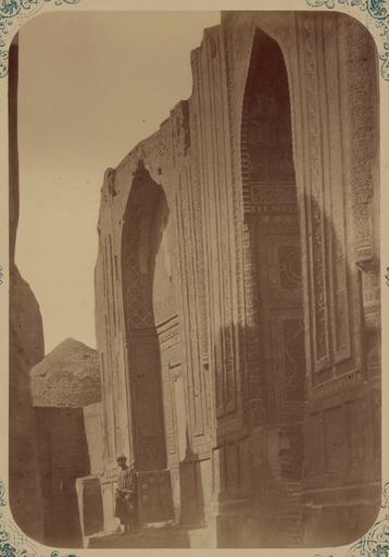 Keywords: Antiquities of Samarkand. Tomb of Saint Kusam-ibn-Abbas (Shah-i Zindah) and Adjacent Mausoleums. Mausoleum of Chuchun Bek WDL3632.png Artwork ru Богаевский иколай Владими ович 1843 1912 гг fr Bogaevskii Nikolaï V 1843-1912 en Bogaevskii Nikolai V 1843-1912 zh 亚历山大·L· ,1840-1888 年 pt Bogaevskii Nikolai V 1843-1912 ar بوغافسكي، نيكولاي ف ، 1843-1912 es Bogaevskii Nikolai V 1843-1912 ru Сама кандские д евности Г обница святого Куссама ибн Абасса Шах-Зиндэ и мавзолеи п и ней авзолей Чучун-Бека Вид с севе а на мавзолеи Чучун-Бека и Кутулука Ту ди Бека Ака fr Antiquités de Samarcande Sépulcre de Kusam-ibn-Abbas Shah-i Zindah et mausolées adjacents Mausolée de Chuchun Bek Vue depuis le nord vers les mausolées de Chuchun Bek et Kutuluk Turdi Bek Aka en Antiquities of Samarkand Tomb of Saint Kusam-ibn-Abbas Shah-i Zindah and Adjacent Mausoleums Mausoleum of Chuchun Bek View from the North Toward the Mausoleums of Chuchun Bek and Kutuluk Turdi Bek Aka zh 撒马尔罕古迹 库萨姆-伊 -阿巴斯之墓(夏伊辛达)及其邻近陵墓 楚楚恩· 克的陵墓 从北 到的楚楚恩· 克陵墓和库图卢克·吐尔迪· 克·阿卡陵墓的景象 pt Antiguidades de Samarcanda Túmulo do Santo Kusam-ibn-Abbas Shakhi Zinda e mausoléus adjacentes Mausoléu de Chuchun Bek Imagem dos mausoléus de Chuchun Bek e Kutuluk Turdi Bek Aka vista desde o norte ar آثار سمرقند ضَرِيح الوَلِيّ قثم بن عباس شاه زنده والأضرحة المجاورة ضريح تشوشون بيك منظر من الشمال في اتجاه أضرحة تشوشون بيك وكُتُلغ تُرْدِى بَكْ-أغا ru Эта фотог афия мавзолеев нек ополя Шах-Зиндэ в Сама канде соде жится в а хеологической части <em> Ту кестанского альбома </em> Шеститомное фотог афическое исследование было подготовлено и издано в 1871 1872 гг под пат онажем гене ала Константина П  фон Кауфмана пе вого гене ал-губе нато а 1867 1882 гг Ту кестана как называли в то в емя те ито ию Цент альной Азии п инадлежавшую Российской импе ии Основными составителями фотомате иалов стали п икоманди ованный к а мии востоковед Александ Людвигович Кун и военный инжене иколай Владими ович Богаевский Они уделяли особое внимание исламской а хитекту е Сама канда в том числе памятникам XIV и XV вв пе иода п авления Таме лана и его п еемников Тиму идов Шах-Зиндэ на пе сидском языке означает живой ца ь пост оенный на д евнем захо онении почитается как мемо иал Куссама ибн Абасса двою одного б ата п о ока ухаммада Два изоб аженных здесь мавзолея асположены на ве шине лестницы идущей от главного входа Снимок сделан с узкого ве хнего п охода нек ополя с видом на юг Слева находится мавзолей Эми -Заде 1386 г а за ним виден мавзолей Шади- ульк-Ака племянницы Таме лана также известной как Ту кан-Ака 1372 г Изысканные ук ашения из ке амических плиток в том числе узо чатая а абская надпись сох анились относительно хо ошо однако над а кой Эми -Заде видны значительные пов еждения В левой части на заднем плане виден мавзолей с двумя куполами <br>Исламская а хитекту а; Фотог афические исследования; огильные памятники; Шах-Зиндэ; Г обницы fr Cette vue des mausolées de la nécropole de Shah-i Zindah à Samarcande est extraite de l'ouvrage archéologique <em>Album du Turkestan</em> Cet inventaire photographique en six volumes fut réalisé entre 1871 et 1872 sous le patronage du général Konstantin P von Kaufman premier gouverneur général 1867-1882 du Turkestan nom donné aux territoires d'Asie centrale de l'Empire russe Les documents visuels furent essentiellement compilés par Aleksandr L  Kun orientaliste rattaché à l'armée et Nikolai V  Bogaevskii ingénieur militaire Ces derniers consacrèrent une attention particulière à l'architecture islamique de Samarcande avec notamment des monuments datant des XIV<sup>e</sup> et XV<sup>e</sup> siècles lors du règne de Tamerlan et de ses successeurs les Timourides Construit sur le site d'un ancien cimetière l'ensemble de Shah-i Zindah « roi vivant » en persan est un mémorial dédié à la vénération de Kusam-ibn-Abbas cousin du prophète Mahomet La vue présentée ici montre les deux mausolées situés au sommet des escaliers de l'entrée principale Elle fut prise face au sud depuis l'intérieur de l'étroit passage supérieur de la nécropole Le mausolée de l'émir Zade  1386 apparaît au centre avec à sa droite le mausolée de Shadi Mulk Aka nièce de Tamerlan également appelée Turkan-Aka  1372 Bien que leurs ornements de carreaux de céramique sophistiqués notamment une écriture arabe avec des motifs ai