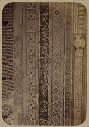 | Keywords: Antiquities of Samarkand. Tomb of the Saint Kusam-ibn-Abbas (Shah-i Zindah) and Adjacent Mausoleums. Mausoleum of the Daughter of Emir Khodzha Toglu Tekin WDL3636.png Artwork ru Богаевский иколай Владими ович 1843 1912 гг fr Bogaevskii Nikolaï V 1843-1912 en Bogaevskii Nikolai V 1843-1912 zh 亚历山大·L· ,1840-1888 年 pt Bogaevskii Nikolai V 1843-1912 ar بوغافسكي، نيكولاي ف ، 1843-1912 es Bogaevskii Nikolai V 1843-1912 ru Сама кандские д евности Г обница святого Куссама ибн Абасса Шах-Зиндэ и мавзолеи п и ней авзолей доче и эми а Ходжи Туглу-Текин адпись на ве хней левой сто оне фасада fr Antiquités de Samarcande Sépulcre de Kusam-ibn-Abbas Shah-i Zindah et mausolées adjacents Mausolée de la fille de l'émir Khodzha Toglu Tekin Inscription sur le côté supérieur gauche de la façade en Antiquities of Samarkand Tomb of the Saint Kusam-ibn-Abbas Shah-i Zindah and Adjacent Mausoleums Mausoleum of the Daughter of Emir Khodzha Toglu Tekin Inscription on the Upper Left Side of the Front zh 撒马尔罕古迹 库萨姆-伊 -阿巴斯之墓(夏伊辛达)及其邻近陵墓 埃米尔 贾·托格鲁·特金女儿的陵墓 正 左上方的铭文 pt Antiguidades de Samarcanda Túmulo do Santo Kusam-ibn-Abbas Shakhi Zinda e mausoléus adjacentes Mausoléu da filha do Emir Khodzha Toglu Tekin Inscrição no lado superior esquerdo da parte frontal ar آثار سمرقند ضَرِيح الوَلِيّ قثم بن عباس شاه زنده والأضرحة المجاورة ضريح ابنة الأمير خواجه توغلو تِكين نقش على الجانب الأيسر العلوي للواجهة ru Эта фотог афия фасада мавзолея Туглу-Текин эми а Хуссейна в нек ополе Шах-Зиндэ в Сама канде соде жится в а хеологической части <em> Ту кестанского альбома </em> Шеститомное фотог афическое исследование было подготовлено и издано в 1871 1872 гг под пат онажем гене ала Константина П фон Кауфмана пе вого гене ал-губе нато а 1867 1882 гг Ту кестана как называли в то в емя те ито ию Цент альной Азии п инадлежавшую Российской импе ии В альбоме уделяется особое внимание исламской а хитекту е Сама канда в том числе памятникам XIV и XV вв пе иода п авления Тиму а Таме лана и его п еемников Шах-Зиндэ на пе сидском языке означает живой ца ь почитается как мемо иал Куссама ибн Абасса двою одного б ата п о ока ухаммада В 1386 г был пост оен мавзолей для Туглу-Текин доче и эми а Ходжи и мате и эми а Хуссейна одного из вельмож Тиму а а фотог афии показана левая сто она главного фасада Видны богатые многоцветные ук ашения в том числе сп ава налево езная колонна из глазу ованной те акоты на углу а ки фасада <em>пештак</em> ; ве тикальные полосы из плитки майолики с геомет ическими и цветочными узо ами; надпись в укописном стиле сулюс внут и сложного пе еплетающегося цветочного о намента; полоса плитки с мотивом из озеток Внешний угол здания ук ашен большой глазу ованной колонной с восходящим омбовидным узо ом Основными цветами являются темно-голубой и би юзовый с белыми элементами <br>А хеологические объекты; А хитекту ные ук ашения и деко ативные элементы; Исламская а хитекту а; Фотог афические исследования; огильные памятники; Шах-Зиндэ; Г обницы fr Cette photographie de la façade du mausolée de Toglu Tekin émir Hussein situé dans la nécropole de Shah-i Zindah à Samarcande est extraite de l'ouvrage archéologique <em>Album du Turkestan</em> Cet inventaire photographique en six volumes fut réalisé entre 1871 et 1872 sous le patronage du général Konstantin P von Kaufman premier gouverneur général 1867-1882 du Turkestan nom donné aux territoires d'Asie centrale de l'Empire russe L'album consacre une attention particulière à l'architecture islamique de Samarcande avec notamment des monuments datant des XIV<sup>e</sup> et XV<sup>e</sup> siècles lors du règne de Tamerlan et de ses successeurs L'ensemble de Shah-i Zindah « roi vivant » en persan est un mémorial dédié à la vénération de Kusam-ibn-Abbas cousin du prophète Mahomet En 1386 un mausolée fut bâti pour Toglu Tekin fille de l'émir Khodzha et mère de l'émir Hussein un des notables de Tamerlan Cette vue présente le côté gauche de la façade principale Les riches ornements polychromes incluent à partir de la droite une colonne en terre cuite sculptée et vernissée fixée à l'angle de l'arceau d'entrée <em>peshtak</em> des bandes verticales de carreaux de majolique formant des motifs géométriques et à fleurs une inscription en style cursif thoulouth disposée dans des entrelacs fleuris sophistiqués ainsi qu'une bande de carre