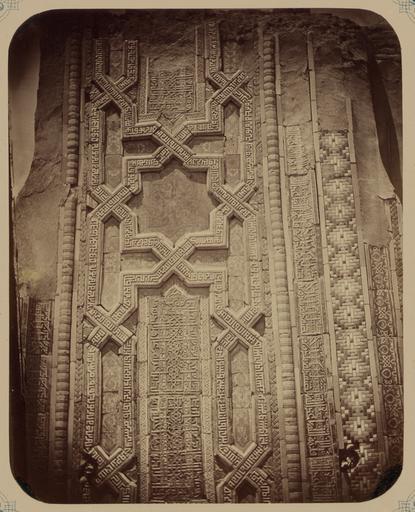 | Keywords: Antiquities of Samarkand. Tomb of the Saint Kusam-ibn-Abbas (Shah-i Zindah) and Adjacent Mausoleums. Mausoleum of Abu Tengi. Inscription on the Left Side of the Facade (Top) WDL3645.png Artwork ru Богаевский иколай Владими ович 1843 1912 гг fr Bogaevskii Nikolaï V 1843-1912 en Bogaevskii Nikolai V 1843-1912 zh 亚历山大·L· ,1840-1888 年 pt Bogaevskii Nikolai V 1843-1912 ar بوغافسكي، نيكولاي ف ، 1843-1912 es Bogaevskii Nikolai V 1843-1912 ru Сама кандские д евности Г обница святого Куссама ибн Абасса Шах-Зиндэ и мавзолеи п и ней авзолей эми а Абу-Тенги адпись на левой сто оне фасада ве х fr Antiquités de Samarcande Sépulcre de Kusam-ibn-Abbas Shah-i Zindah et mausolées adjacents Mausolée d'Abu Tengi Inscription sur le côté gauche de la façade partie supérieure en Antiquities of Samarkand Tomb of the Saint Kusam-ibn-Abbas Shah-i Zindah and Adjacent Mausoleums Mausoleum of Abu Tengi Inscription on the Left Side of the Facade Top zh 撒马尔罕古迹 库萨姆-伊 -阿巴斯之墓(夏伊辛达)及其邻近陵墓 阿布·腾吉的陵墓 立 (顶部)左侧铭文 pt Antiguidades de Samarcanda Túmulo do Santo Kusam-ibn-Abbas Shakhi Zinda e mausoléus adjacentes Mausoléu de Abu Tengi Inscrição no lado esquerdo da fachada Parte superior ar آثار سمرقند ضَرِيح الوَلِيّ قثم بن عباس شاه زنده والأضرحة المجاورة ضريح أبو تنجي نقش على الجانب الأيسر للواجهة بالأعلى ru Эта фотог афия мавзолея Усто Али в нек ополе Шах-Зиндэ в Сама канде соде жится в а хеологической части <em> Ту кестанского альбома </em> Шеститомное фотог афическое исследование было подготовлено и издано в 1871 1872 гг под пат онажем гене ала Константина П фон Кауфмана пе вого гене ал-губе нато а 1867 1882 гг Ту кестана как называли в то в емя те ито ию Цент альной Азии п инадлежавшую Российской импе ии В альбоме уделяется особое внимание исламской а хитекту е Сама канда в том числе памятникам XIV и XV вв пе иода п авления Таме лана и его п еемников Шах-Зиндэ на пе сидском языке означает живой ца ь почитается как мемо иал Куссама ибн Абасса двою одного б ата п о ока ухаммада Заказчик этого мавзолея пост оенного около 1380 г неизвестен авзолей часто называют по имени главного ст оителя Усто Али есефи Большая часть фасада п ете пела значительные пов еждения однако сох анившиеся ук ашения п едставляют собой одни из самых изысканных деко ативных элементов во всем нек ополе Ке амические ук ашения выполнены из многоцветной плитки майолики в геомет ических узо ах включая ве тикальные полосы с а абским письмом в куфическом стиле и стиле сулюс Эти азнооб азные ук ашения об амлены узкими полосами с куфическими надписями кото ые пе есекаются и об азуют восьмиконечную звезду Хотя большие сегменты асположенные ближе к ве ху отсутствуют на внешних полосах по обеим сто онам видны лиственные мотивы и сложный пе еплетающийся о намент <br>А хитекту ные ук ашения и деко ативные элементы; Исламская а хитекту а; Фотог афические исследования; огильные памятники; Шах-Зиндэ; Г обницы fr Cette photographie du mausolée Usto Ali situé dans la nécropole de Shah-i Zindah à Samarcande est extraite de l'ouvrage archéologique <em>Album du Turkestan</em> Cet inventaire photographique en six volumes fut réalisé entre 1871 et 1872 sous le patronage du général Konstantin P von Kaufman premier gouverneur général 1867-1882 du Turkestan nom donné aux territoires d'Asie centrale de l'Empire russe L'album consacre une attention particulière à l'architecture islamique de Samarcande avec notamment des monuments datant des XIV<sup>e</sup> et XV<sup>e</sup> siècles lors du règne de Tamerlan et de ses successeurs L'ensemble de Shah-i Zindah « roi vivant » en persan est un mémorial dédié à la vénération de Kusam-ibn-Abbas cousin du prophète Mahomet Le commanditaire de ce mausolée construit en 1380 environ étant inconnu ce dernier est souvent appelé par le nom de son maître d'œuvre Usto Ali Nesefi Malgré les dommages considérables sur la majeure partie de la façade les vestiges des ornements révèlent qu'il s'agissait de l'une des décorations les plus sophistiquées de toute la nécropole Les céramiques incluent des carreaux de majolique polychromes formant des motifs géométriques ainsi que des bandes verticales contenant une écriture arabe de styles thoulouth et kufique Ces ornements sont encadrés de bandes étroites pourvues d'inscriptions kufiques angulaires s'entrecroisant pour former une étoile à huit br