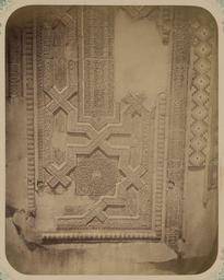 | Keywords: Antiquities of Samarkand. Tomb of the Saint Kusam-ibn-Abbas (Shah-i Zindah) and Adjacent Mausoleums. Mausoleum of Abu Tengi. Inscription on the Right Side of the Facade. Bottom WDL3646.png Artwork ru Богаевский иколай Владими ович 1843 1912 гг fr Bogaevskii Nikolaï V 1843-1912 en Bogaevskii Nikolai V 1843-1912 zh 亚历山大·L· ,1840-1888 年 pt Bogaevskii Nikolai V 1843-1912 ar بوغافسكي، نيكولاي ف ، 1843-1912 es Bogaevskii Nikolai V 1843-1912 ru Сама кандские д евности Г обница святого Куссама ибн Абасса Шах-Зиндэ и мавзолеи п и ней авзолей эми а Абу-Тенги адпись на п авой сто оне фасада из fr Antiquités de Samarcande Sépulcre de Kusam-ibn-Abbas Shah-i Zindah et mausolées adjacents Mausolée d'Abu Tengi Inscription sur le côté droit de la façade Partie inférieure en Antiquities of Samarkand Tomb of the Saint Kusam-ibn-Abbas Shah-i Zindah and Adjacent Mausoleums Mausoleum of Abu Tengi Inscription on the Right Side of the Facade Bottom zh 撒马尔罕古迹 库萨姆-伊 -阿巴斯之墓(夏伊辛达)及其邻近陵墓 阿布·腾吉的陵墓 立 右侧的铭文 底部 pt Antiguidades de Samarcanda Túmulo do Santo Kusam-ibn-Abbas Shakhi Zinda e mausoléus adjacentes Mausoléu de Abu Tengi Inscrição no lado direito da fachada Parte inferior ar آثار سمرقند ضَرِيح الوَلِيّ قثم بن عباس شاه زنده والأضرحة المجاورة ضريح أبو تنجي نقش على الجانب الأيمن من الواجهة الجزء السفلي ru Эта фотог афия мавзолея Усто Али в нек ополе Шах-Зиндэ в Сама канде соде жится в а хеологической части <em> Ту кестанского альбома </em> Шеститомное фотог афическое исследование было подготовлено и издано в 1871 1872 гг под пат онажем гене ала Константина П фон Кауфмана пе вого гене ал-губе нато а 1867 1882 гг Ту кестана как называли в то в емя те ито ию Цент альной Азии п инадлежавшую Российской импе ии В альбоме уделяется особое внимание исламской а хитекту е Сама канда в том числе памятникам XIV и XV вв пе иода п авления Таме лана и его п еемников Шах-Зиндэ на пе сидском языке означает живой ца ь почитается как мемо иал Куссама ибн Абасса двою одного б ата п о ока ухаммада Заказчик этого мавзолея пост оенного около 1380 г неизвестен авзолей часто называют по имени главного ст оителя Усто Али есефи Большая часть фасада п ете пела значительные пов еждения однако сох анившиеся ук ашения п едставляют собой одни из самых изысканных деко ативных элементов во всем нек ополе Ке амические ук ашения выполнены из многоцветной плитки майолики в геомет ических узо ах включая ве тикальные полосы с а абским письмом в куфическом стиле и стиле сулюс а также фаянсовые панели Эти ук ашения пе еплетаются с узкими полосами из куфических надписей Полосы пе есекаются и об азуют восьмиконечную звезду кото ая также соде жит куфические надписи а внешних полосах видны лиственные мотивы и сложный пе еплетающийся о намент <br>А хитекту ные ук ашения и деко ативные элементы; Исламская а хитекту а; Фотог афические исследования; огильные памятники; Шах-Зиндэ; Г обницы fr Cette photographie du mausolée Usto Ali situé dans la nécropole de Shah-i Zindah à Samarcande est extraite de l'ouvrage archéologique <em>Album du Turkestan</em> Cet inventaire photographique en six volumes fut réalisé entre 1871 et 1872 sous le patronage du général Konstantin P von Kaufman premier gouverneur général 1867-1882 du Turkestan nom donné aux territoires d'Asie centrale de l'Empire russe L'album consacre une attention particulière à l'architecture islamique de Samarcande avec notamment des monuments datant des XIV<sup>e</sup> et XV<sup>e</sup> siècles lors du règne de Tamerlan et de ses successeurs L'ensemble de Shah-i Zindah « roi vivant » en persan est un mémorial dédié à la vénération de Kusam-ibn-Abbas cousin du prophète Mahomet Le commanditaire de ce mausolée construit en 1380 environ étant inconnu ce dernier est souvent appelé par le nom de son maître d'œuvre Usto Ali Nesefi Malgré les dommages considérables sur la majeure partie de la façade les vestiges des ornements révèlent qu'il s'agissait de l'une des décorations les plus sophistiquées de toute la nécropole Les céramiques incluent des carreaux de majolique polychromes formant des motifs géométriques des bandes verticales contenant une écriture arabe de styles thoulouth et kufique ainsi que des panneaux de faïence Ces ornements sont entrelacés de bandes étroites composées d'inscriptions kufiques angulaires Les bandes s'entrecroisent pour former une