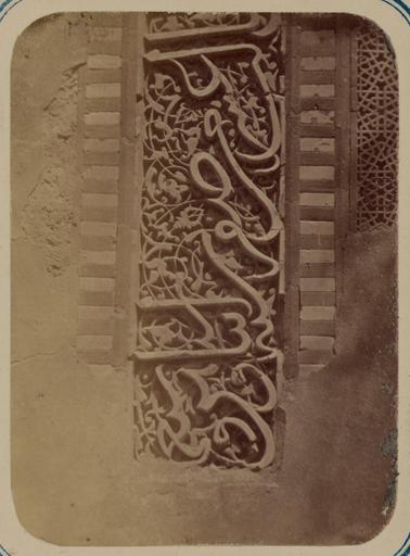 | Keywords: Antiquities of Samarkand. Tomb of the Saint Kusam-ibn-Abbas (Shah-i Zindah) and Adjacent Mausoleums. Mausoleum of Sha Arap. Section of Inscription on the Front Facade WDL3663.png Artwork ru Богаевский иколай Владими ович 1843 1912 гг fr Bogaevskii Nikolaï V 1843-1912 en Bogaevskii Nikolai V 1843-1912 zh 亚历山大·L· ,1840-1888 年 pt Bogaevskii Nikolai V 1843-1912 ar بوغافسكي، نيكولاي ف ، 1843-1912 es Bogaevskii Nikolai V 1843-1912 ru Сама кандские д евности Г обница святого Куссама ибн Абасса Шах-Зиндэ и мавзолеи п и ней авзолей Ша-А ап Часть надписи на пе еднем фасаде fr Antiquités de Samarcande Sépulcre de Kusam-ibn-Abbas Shah-i Zindah et mausolées adjacents Mausolée de Sha Arap Section d'une inscription sur la façade en Antiquities of Samarkand Tomb of the Saint Kusam-ibn-Abbas Shah-i Zindah and Adjacent Mausoleums Mausoleum of Sha Arap Section of Inscription on the Front Facade zh 撒马尔罕古迹 库萨姆-伊 -阿巴斯之墓(夏伊辛达)及其邻近陵墓 沙·阿拉普的陵墓 正立 上的部分铭文 pt Antiguidades de Samarcanda Túmulo do Santo Kusam-ibn-Abbas Shakhi Zinda e mausoléus adjacentes Mausoléu de Sha Arap Seção da inscrição na fachada frontal ar آثار سمرقند ضَرِيح الوَلِيّ قثم بن عباس شاه زنده والأضرحة المجاورة ضريح شاء آراب جزء من النقش الموجود على الواجهة الأمامية ru Эта фотог афия деко ативной надписи на безымянном мавзолее в севе ной г уппе г обниц нек ополя Шах-Зиндэ Сама канд Узбекистан соде жится в а хеологической части <em> Ту кестанского альбома </em> Шеститомное фотог афическое исследование было подготовлено и издано в 1871 1872 гг под пат онажем гене ала Константина П фон Кауфмана пе вого гене ал-губе нато а 1867 1882 гг Ту кестана как называли в то в емя те ито ию Цент альной Азии п инадлежавшую Российской импе ии В альбоме уделяется особое внимание исламской а хитекту е Сама канда в том числе памятникам XIV и XV вв пе иода п авления Тиму а Таме лана и его п еемников Особенно следует отметить Шах-Зиндэ на пе сидском языке означает живой ца ь кото ый пост оен на возвышенности бывшей местом д евнего поселения известного как Аф асиаб Шах-Зиндэ почитается как мемо иал Куссама ибн Абасса двою одного б ата п о ока ухаммада Хотя заказчик пост ойки этого мавзолея окончательно не оп еделен дата его ст оительства известна 1360 1361 гг есмот я на се ьезные пов еждения на фасаде мавзолея видно большое азнооб азие многоцветных ке амических ук ашений об азующих цветочные геомет ические и буквенные узо ы А ка фасада или <em>пештак</em> об амлена езной полосой из глазу ованной те акоты с надписью в укописном стиле сулюс Буквы вписаны в сложный узо из завитков полоса имеет бо дю из плитки а фотог афии виден ф агмент надписи в нижней левой сто оне фасада <br>А хеологические объекты; А хитекту ные ук ашения и деко ативные элементы; Исламская а хитекту а; Фотог афические исследования; огильные памятники; Шах-Зиндэ; Г обницы fr Cette photographie d'une inscription décorative d'un mausolée non identifié situé au nord de l'ensemble des sanctuaires de la nécropole de Shah-i Zindah à Samarcande est extraite de l'ouvrage archéologique <em>Album du Turkestan</em> Cet inventaire photographique en six volumes fut réalisé entre 1871 et 1872 sous le patronage du général Konstantin P von Kaufman premier gouverneur général 1867-1882 du Turkestan nom donné aux territoires d'Asie centrale de l'Empire russe L'album consacre une attention particulière à l'architecture islamique de Samarcande avec notamment des monuments datant des XIV<sup>e</sup> et XV<sup>e</sup> siècles lors du règne de Tamerlan et de ses successeurs Il convient de souligner que l'ensemble de Shah-i Zindah « roi vivant » en persan fut construit sur le site élevé d'une ancienne colonie connue sous le nom d'Afrosiabe et qu'il était dédié à la vénération de Kusam-ibn-Abbas cousin du prophète Mahomet Bien que le commanditaire du mausolée n'ait pas été identifié de façon concluante on a pu déterminer que sa construction date d'entre 1360 et 1361 Malgré les dommages considérables la façade du mausolée possède encore de riches décorations en céramique polychrome notamment des motifs floraux géométriques et épigraphiques L'arceau de façade ou <em>peshtak</em> est encadré de bandes en terre cuite sculptée et vernissée contenant une écriture en style cursif thoulouth La bande est bordée de carreaux et les lettres qu'elle contient apparaissent sur des vrilles délicates Cet