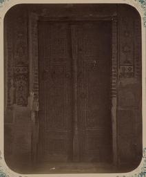 | Keywords: Antiquities of Samarkand. Tomb of the Saint Kusam-ibn-Abbas (Shah-i Zindah) and Adjacent Mausoleums. Interior of the Chartak. Door to the Chartak in the Mosque (khanaka) Shah-i Zindah WDL3690.png Artwork ru Богаевский иколай Владими ович 1843 1912 гг fr Bogaevskii Nikolaï V 1843-1912 en Bogaevskii Nikolai V 1843-1912 zh 亚历山大·L· ,1840-1888 年 pt Bogaevskii Nikolai V 1843-1912 ar بوغافسكي، نيكولاي ف ، 1843-1912 es Bogaevskii Nikolai V 1843-1912 ru Сама кандские д евности Г обница святого Куссама ибн Абасса Шах-Зиндэ и мавзолеи п и ней Внут енняя часть ча така Две ь из ча така в мечеть ханаку Шах-Зиндэ fr Antiquités de Samarcande Sépulcre de Kusam-ibn-Abbas Shah-i Zindah et mausolées adjacents Intérieur du chartak Porte du chartak dans la mosquée khanaka de Shah-i Zindah en Antiquities of Samarkand Tomb of the Saint Kusam-ibn-Abbas Shah-i Zindah and Adjacent Mausoleums Interior of the Chartak Door to the Chartak in the Mosque khanaka Shah-i Zindah zh 撒马尔罕古迹 卡西姆-伊 -阿巴斯之墓(夏伊辛达)及其邻近陵墓 道小室内景 夏伊辛达清 寺(纪念 建筑群) 道小室的大门 pt Antiguidades de Samarcanda Túmulo do Santo Kusam-ibn-Abass Shah-i Zindah e mausoléus adjacentes Interior da Chartak Porta para a chartak na mesquita khanaka Shah-i Zindah ar آثار سمرقند ضَرِيح الوَلِيّ قثم بن عباس شاه زنده والأضرحة المجاورة الجزء الداخلي من الشرتاك باب يؤدي إلى الشرتاك في مسجد خانكة شاه زنده ru Эта фотог афия езной две и ведущей в мечеть Куссама ибн Абасса в нек ополе Шах-Зиндэ в Сама канде соде жится в а хеологической части <em> Ту кестанского альбома </em> Шеститомное фотог афическое исследование было подготовлено и издано в 1871 1872 гг под пат онажем гене ала Константина П фон Кауфмана пе вого гене ал-губе нато а 1867 1882 гг Ту кестана как называли в то в емя те ито ию Цент альной Азии п инадлежавшую Российской импе ии Основными составителями фотомате иалов а хеологической части стали п икоманди ованный к а мии востоковед Александ Людвигович Кун и военный инжене иколай Владими ович Богаевский Они уделяли особое внимание исламской а хитекту е Сама канда в том числе памятникам XIV и XV вв пе иода п авления Таме лана и его п еемников Особенно следует отметить ансамбль Шах-Зиндэ на пе сидском языке означает живой ца ь кото ый почитается как мемо иал Куссама ибн Абасса двою одного б ата п о ока ухаммада Эта искусно ук ашенная две ь вы езанная из вяза и изначально пок ытая мозаикой из слоновой кости ведет из <em>ча така</em> к ытая комната в п оходе нек ополя в мечеть и мавзолей пост оенный в честь Куссама ибн Абасса В надписи соде жится инфо мация о том что две ь была изготовлена в 1404 1405 гг масте ом Юсуфом Ши ази Ансамбль за две ью включает в себя <em>ханаку</em> или в еменное жилище для паломников пост оенную в честь святого Две ь об амлена ке амикой в том числе фаянсовыми панелями с цветочными мотивами <br>А хеологические объекты; Исламская а хитекту а; Фотог афические исследования; огильные памятники; Шах-Зиндэ; Г обницы fr Cette photographie de la porte sculptée menant vers la mosquée de Kusam-ibn-Abbas située dans la nécropole de Shah-i Zindah à Samarcande est extraite de l'ouvrage archéologique <em>Album du Turkestan</em> Cet inventaire photographique en six volumes fut réalisé entre 1871 et 1872 sous le patronage du général Konstantin P von Kaufman premier gouverneur général 1867-1882 du Turkestan nom donné aux territoires d'Asie centrale de l'Empire russe Les documents visuels des volumes archéologiques furent essentiellement compilés par Aleksandr L Kun orientaliste rattaché à l'armée et Nikolai V Bogaevskii ingénieur militaire Ces derniers consacrèrent une attention particulière à l'architecture islamique de Samarcande avec notamment des monuments datant des XIV<sup>e</sup> et XV<sup>e</sup> siècles lors du règne de Tamerlan et de ses successeurs Il convient de souligner que Shah-i Zindah « roi vivant » en persan est un mémorial dédié à la vénération de Kusam-ibn-Abbas cousin du prophète Mahomet Cette porte richement décorée et sculptée dans l'orme était à l'origine ornée d'incrustations d'ivoire Elle mène d'un <em>chartak</em> salle couverte sur un passage de nécropole à la mosquée et au mausolée dédiés à Kusam-ibn-Abbas Une inscription révèle que la porte fut réalisée de 1404 à 1405 par le maître Yusuf Shirazi L'ensemble derrière cette porte inclut une <em>khanaka</em> ou loge de pèlerins consacr
