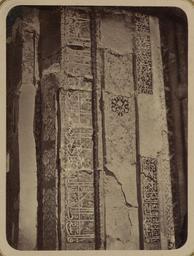 | Keywords: Antiquities of Samarkand. Tomb of the Saint Kusam-ibn-Abbas (Shah-i Zindah) and Adjacent Mausoleums. Mausoleum of Shirin Bika. Section of Inscription of the Left Side of the Facade WDL3696.png Artwork ru Богаевский иколай Владими ович 1843 1912 гг fr Bogaevskii Nikolaï V 1843-1912 en Bogaevskii Nikolai V 1843-1912 zh 亚历山大·L· ,1840-1888 年 pt Bogaevskii Nikolai V 1843-1912 ar بوغافسكي، نيكولاي ف ، 1843-1912 es Bogaevskii Nikolai V 1843-1912 ru Сама кандские д евности Г обница святого Куссама ибн Абасса Шах-Зиндэ и мавзолеи п и ней авзолей Ши ин-Бека Часть надписи с левой сто оны фасада fr Antiquités de Samarcande Sépulcre de Kusam-ibn-Abbas Shah-i Zindah et mausolées adjacents Mausolée de Shirin Bika Section de l'inscription du côté gauche de la façade en Antiquities of Samarkand Tomb of the Saint Kusam-ibn-Abbas Shah-i Zindah and Adjacent Mausoleums Mausoleum of Shirin Bika Section of Inscription of the Left Side of the Facade zh 撒马尔罕古迹 库萨姆-伊 -阿巴斯之墓(夏伊辛达)及其邻近陵墓 林-比卡陵墓 立 左侧的部分铭文 pt Antiguidades de Samarcanda Túmulo do Santo Kusam-ibn-Abbas Shah-i Zindah e mausoléus adjacentes Mausoléu de Shirin Bika Área de inscrições do lado esquerdo da fachada ar آثار سمرقند ضَرِيح الوَلِيّ قثم بن عباس شاه زنده والأضرحة المجاورة ضريح شيرين بيك جزء من نقش على الجانب الأيسر من الواجهة ru Эта фотог афия фасада мавзолея Ши ин-Бек-Ака в нек ополе Шах-Зиндэ в Сама канде Узбекистан соде жится в а хеологической части <em> Ту кестанского альбома </em> Шеститомное фотог афическое исследование было подготовлено и издано в 1871 1872 гг под пат онажем гене ала Константина П фон Кауфмана пе вого гене ал-губе нато а 1867 1882 гг Ту кестана как называли в то в емя те ито ию Цент альной Азии п инадлежавшую Российской импе ии В альбоме уделяется особое внимание исламской а хитекту е Сама канда в том числе памятникам XIV и XV вв пе иода п авления Тиму а Таме лана и его п еемников Особенно следует отметить ансамбль Шах-Зиндэ на пе сидском языке означает живой ца ь кото ый почитается как мемо иал Куссама ибн Абасса двою одного б ата п о ока ухаммада авзолей Ши ин-Бек-Ака был пост оен в 1385 1386 гг для младшей сест ы Тиму а и свидетельствует о пе сидском влиянии есмот я на значительные пов еждения на фасаде сох анились обильные ке амические ук ашения в том числе анние об азцы составной мозаики цвета кото ой ва ьи уются от о анжевого и к асного до темно-синего Этот ф агмент асположен слева от входной а ки и соде жит две полосы с надписями выполненными в укописном стиле сулюс где буквы пе еплетаются с цветочными мотивами Авто ство некото ых надписей п иписывают Сок ату в том числе В п авде люди этого ми а подобны ликующим птицам ежду надписями видна полоса с изящными цветочными мотивами <br>А хеологические объекты; А хитекту ные ук ашения и деко ативные элементы; Исламская а хитекту а; Фотог афические исследования; огильные памятники; Шах-Зиндэ; Г обницы fr Cette photographie de la façade du mausolée de Shirin Bika Aka situé dans la nécropole de Shah-i Zindah à Samarcande Ouzbékistan est extraite de l'ouvrage archéologique <em>Album du Turkestan</em> Cet inventaire photographique en six volumes fut réalisé entre 1871 et 1872 sous le patronage du général Konstantin P von Kaufman premier gouverneur général 1867-1882 du Turkestan nom donné aux territoires d'Asie centrale de l'Empire russe L'album consacre une attention particulière à l'architecture islamique de Samarcande avec notamment des monuments datant des XIV<sup>e</sup> et XV<sup>e</sup> siècles lors du règne de Tamerlan et de ses successeurs Il convient de souligner que l'ensemble de Shah-i Zindah « roi vivant » en persan est un mémorial dédié à la vénération de Kusam-ibn-Abbas cousin du prophète Mahomet Le mausolée de Shirin Bika Aka d'influence perse fut construit de 1385 à 1386 pour la petite sœur de Tamerlan Malgré les dommages considérables la façade a conservé de nombreux ornements de céramique notamment des exemples des premières mosaïques composites avec une palette de couleurs allant de l'orange et du rouge au bleu foncé Le fragment présenté ici appartient au côté gauche de l'arceau d'entrée et inclut deux bandes d'inscription avec des caractères en style cursif thoulouth entrelacés de motifs à fleurs Certaines des inscriptions ont été attribuées à Socrate notamment « En réalité les citoyens de ce monde sont comme des ois