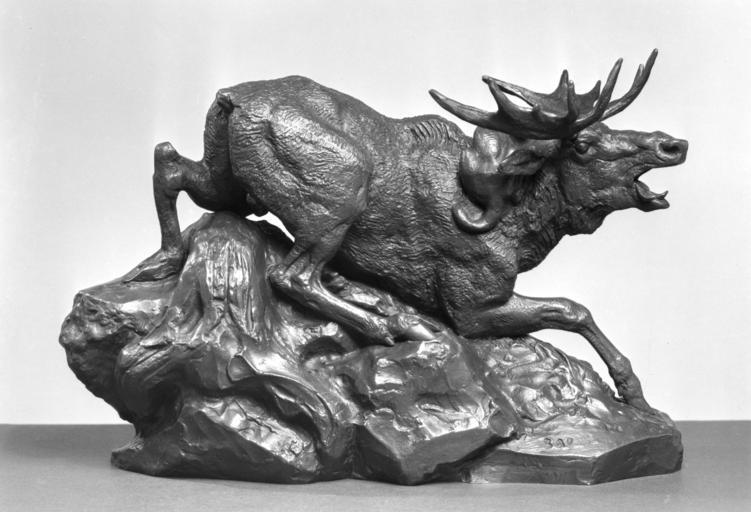 Keywords: Antoine-Louis Barye - Elk Surprised by a Lynx - Walters 27136.jpg The base of this piece is cast separately century 19 bronze with brown varnish patina H 8 3/4 x L 13 5/16 in 22 2 x 33 8 cm accession number 27 136 17046 George A Lucas date and mode of acquisition unknown see Lucas diary Henry Walters Baltimore 1903 mode of acquisition unknown Walters Art Museum Henry Walters Acquired by Henry Walters 1903 Signature BARYE place of origin Paris France Walters Art Museum license Sculptures by Antoine-Louis Barye Media contributed by the Walters Art Museum needs category review Sculptures in the Walters Art Museum |