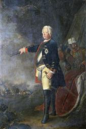 | Keywords: Antoine Pesne - Porträt des Königs Friedrich Wilhelm I. von Preußen.jpg Artwork Creator Antoine Pesne date oil on canvas cm Stiftung Thüringer Schlösser und Gärten Schloss Molsdorf Festsaal Südwand TSG 18-28 20086174 other versions PD-old-100 DEFAULTSORT Pesne; Friedrich Wilhelm 1 of Prussia; Molsdorf Palace Antoine Pesne Schloss Molsdorf Friedrich Wilhelm I of Prussia 1730 18th-century men looking at viewer in art 18th-century oil portraits of standing men at three-quarter length wearing armour Ermine clothing in art Military helmets in portraits Pointing away from viewer in art Pointing left in art Pointing with the index finger in portrait paintings Portrait paintings of men holding marshal's baton Portraits with swords Powdered wigs in art Sash of the Order of the Black Eagle in portrait paintings Tassels in portrait paintings Waist sashes in art Paintings by Antoine Pesne with fur Images from Bildarchiv Foto Marburg |
