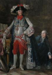 | Keywords: Anton Hickel 002.jpg Artwork anonymous after Portrait of male otherdate century 18 Oil on canvas Stadtmuseum Düsseldorf http //www duesseldorf de/stadtmuseum/sammlung/04/015/10290 shtml object history de Eigentum der Gemäldegalerie Stiftung museum kunst palast Dauerleihgabe der Kunstakademie Düsseldorf NRW B 131 de Der Kurfürst trägt das Ordensgewand des St Georgs-Ritterordens Im Hintergrund ist ein Relief mit zwei Engeln zu erkennen die die Wappen von Kurbayern und der Kurpfalz halten und einander umarmen - ein Hinweis auf die Vereinigung der Territorien im Jahr 1777 nach dem Aussterben der bayerischen Wittelsbacher Hinter dem Kurfürst sein unehelicher Sohn Graf von Heydeck seit 1789 Fürst Karl August von und zu Bretzenheim <br><br>Replik eines Gemäldes von Anton Hickel other versions PD-old-100 Anton Hickel Paintings in the Stadtmuseum Düsseldorf Charles Theodore Elector of Bavaria 1790c Karl August von Bretzenheim 1790c 18th-century portrait paintings not categorised by year Male 18th-century oil on canvas paintings 18th-century oil portraits of standing men at full length in ceremonial robes 1790c 18th-century portrait paintings in Germany 1790c Breeches in art Bretzenheim Ceremonial robes of chivalric orders St George 1790 Copies of portrait paintings Ermine clothing in art Jabots in art Left hand on hip in portrait paintings Male white shoes in portrait paintings 1790c Order of Saint George Bavaria People in the 1770s Portrait paintings of men wearing hats 1790c Portrait paintings of men with crowns on cushions 1790c Portrait paintings of men with swords 1790c Portrait paintings of standing men with hands resting on tables 1790c Portraits with page boy 1790c Portraits with gloves 1790c Replicas of paintings |
