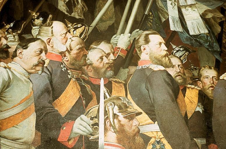 | Keywords: Anton von Werner-Kaiserproklamation, zweite Fassung 1882-4-detail.jpg Anton von Werner Kaiserproklamation in Versailles zweite Fassung 1882 als Wandgemälde für die Ruhmeshalle Berlin 1944 nach Bombentreffer zerstört Detail Vergleiche auch de Darstellungsweisen der Kaiserproklamation in Versailles Crowning of Wilhelm I to Emperor of Germany in Versailles by Anton von Werner second version for the Ruhmeshalle Berlin Destroyed in WW 2 as the first version too Do not confuse with the third version of 1885 a birthday present for Bismarck with some differences Detail Third commonly known version http //www bildindex de/bilder/zi0290_0026a jpg 1882 Creator Anton von Werner Aufnahme vor der Zerstörung 1943/44 Unbekannter Photograph PD-old-auto 1915 Friedrich III of Germany Kaiserproklamation im Spiegelsaal von Versailles am 18 Januar 1871 1882 by Anton von Werner Images from Bildarchiv Foto Marburg |