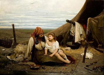 | Keywords: Antoni Kozakiewicz - Cygańska Rodzina (01).jpg Antoni Kozakiewicz 1841 1929 Антони Козакевич 1841 1929 oil canvas cm 149 205 object history credit line A Kozakiewicz signature München text lower right accession number http //www arcadja com/auctions/en/private/kozakiewicz_anton/artworks/15797/0/ Auction House Desa Unicum Warsaw via ARCADJA auction results thumb left LangSwitch a similar painting ein ähnliches Gemälde Podobny obraz PD-old-auto-1923 1929 Antoni Kozakiewicz Roma people in art Paintings of families Paintings of women sitting on the ground outdoors |