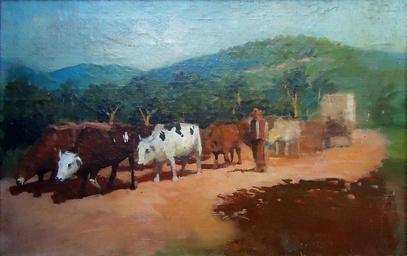 | Keywords: Antonio Ferrigno, carro de boi na estrada, óleo sobre tela, 1895-1905, 18,1 x 28,2 cm, Photo Gedley Belchior Braga.jpg en Antonio Ferrigno 1863-1940 Bullock cart on the road oil on canvas c 1895-1905 18 1 x 28 2 cm Private Collection Photo Gedley Belchior Braga Probably this is one of the studies for the bullock cart that is present in the work O Café para a Estação 1903 from Museu Paulista Collection São Paulo SP 2013-07-25 Projeto del Rei Collection Antonio Ferrigno Photo Gedley Belchior Braga PD-old-auto-1923 1940 Uploaded with UploadWizard Projeto del Rei Antonio Ferrigno History of São Paulo Ox-drawn carts in Brazil Ox-drawn carts in art |