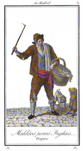 Keywords: Antonio Rodríguez - Trapero.JPG es Grabado Malditos perros Yngleses Trapero 1802 en el catálogo de 'Trajes de España' dibujado por Antonio Rodríguez Reproducción facsimil de treinta y ocho estampas más catorce variantes de los Trajes de Madrid Todas iluminadas Introducción de Juan Carrete Parrondo Madrid 1989 Coleccion General de los Trajes de Madrid 52 grabados de Antonio Rodríguez Madrid 1801 Facsimil 1989 Edición del Exmo Ayuntamiento de Madrid ISBN 84-7812-069-6 escaneado por el usuario que sube la imagen al repertorio de los Comunes Drawn by Creator Antonio Rodríguez Valencia 1765 - Madrid ca 1825 ; 1801 Unclear-PD-US-old-100 Madrid in the 1800s People of Madrid in art 1801 engravings Engravings from Spain Coleccion general de los trajes de Madrid |