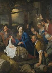 | Keywords: Antoon van den Heuvel - Adoration of the shepherds.jpg Artwork creator Antoon van den Heuvel en Adoration of the shepherds Oil canvas cm 257 5 187 c 1635 http //www museuminzicht be/public/collecties/objecten/objectdet/index cfm id Institution Museum voor Schone Kunsten Gent PD-old-100 Antoon van den Heuvel Flemish paintings in the Museum of Fine Arts Ghent 17th-century paintings of adoration by the shepherds | ||||