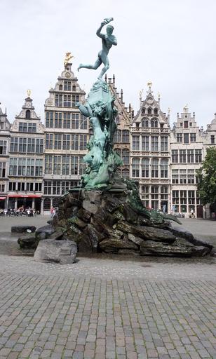 Keywords: antwerp bronze statue brabobrunnen grand place square city belgium rathaus downtown