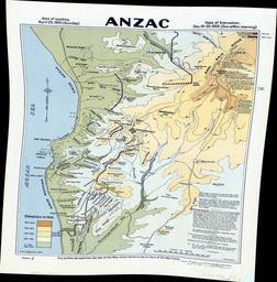 | Keywords: Anzac Cove region topographic battlefield map H.E.C. Robinson 1916 (georeferenced).jpg en Topographic map of Galipoli Peninsula Turkey showing ANZAC and Turkish posts trenches tracks and roads and approximate landing places Area covered from north of Bauchops Hill to Wine Glass Ridge from the Agean Sea to East of Hill Q Relief shown by contours and spot heights “ based on Turkish maps 1915 with ANZAC trenches as at September 1915 <br /><br /> Georeferenced to Google Earth using QGIS ver 2 0 1 Datum WGS84 EPSG 4326 North 40 266239° South 40 212001° East 26 320210° West 26 266953° 1916 map face 2014 georeference National Library of Australia http //nla gov au/nla map-vn5448957 MAP G7431 S65 1916 Gerald R Campbell map face ; H E C Robinson publisher ; Brass razoo georeference 40 236294 26 277364 Custom license marker 2014 02 15 PD-Australia overlay Uploaded with UploadWizard Maps of the Battle of Gallipoli Battle of Gallipoli at ANZAC |