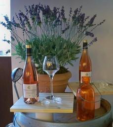 Keywords: AOC Vacqueyras rosé + lavande.jpg fr Bouteille de rosé d'AOC Vacqueyras own Véronique PAGNIER 2010-07-04 Vacqueyras AOC Wines bottles of Rhône wine region Rosé wine Taken with Kodak EasyShare Z950
