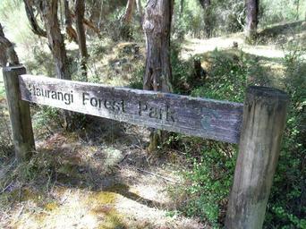Keywords: Aorangi Forest Park sign.jpg This sign shows the DoC emblem and still the Haurangi name; found along the Aorangi crossing near Kawakawa Hut 2013-02-11 own Sarang Aorangi Forest Park
