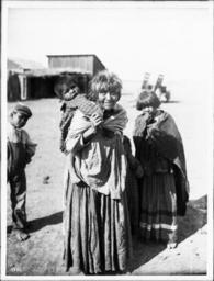 | Keywords: Apache Indian grandmother carrying her grandchild on her back and two others standing nearby, Palomas Indian Reservation, 1903 (CHS-3585).jpg en <br> Apache Indian grandmother carrying her grandchild on her back and two others standing nearby Palomas Indian Reservation 1903 Photograph of an Apache Indian grandmother carrying her grandchild on her back and two other grandchildren a boy and a girl standing nearby ca 1900 The woman's short graying hair is windblown She is grasping the right hand of the child on her back with her right hand That child wears a plaid shirt The woman wears a long dotted dress She is turned to her left The other girl and boy are barefoot A dwelling blurred is visible in the background Call number CHS-3585 Photographer James George Wharton Filename CHS-3585 Coverage date 1903 Part of collection California Historical Society Collection 1860-1960 Type images Geographic subject city or populated place Palomas Repository name USC Libraries Special Collections Format glass plate negatives Microfiche number 1-161- Archival file chs_Volume95/CHS-3585 tiff Part of subcollection Title Insurance and Trust and C C Pierce Photography Collection 1860-1960 Repository address Doheny Memorial Library Los Angeles CA 90089-0189 Geographic subject country USA Format aacr2 2 photographs glass photonegative photoprint b w ; 22 x 17 cm Rights Digitally reproduced by the USC Digital Library; From the California Historical Society Collection at the University of Southern California Subject adlf tribal areas Project USC Accession number 3585 Repository email specol usc edu Contributing entity California Historical Society Date created 1903 Publisher of the digital version University of Southern California Libraries Format aat photographic prints; photographs Legacy record ID chs-m16206; USC-1-1-1-13477 Access conditions Send requests to address or e-mail given Phone 213 821-2366; fax 213 740-2343 Subject file heading Indians -- Apache Subject lcsh Indians of North America; Apache Indians; Women; Children; Clothing and dress Subject Apache Indians 1903 date created James George Wharton http //digitallibrary usc edu/cdm/ref/collection/p15799coll65/id/16146 PD-old-70-1923 Images from USC Digital Library uploaded by Fæ California Historical Society Collection 1860-1960 Glass plate negatives Apaches Photographs by George Wharton James |