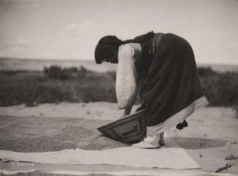 | Keywords: museum of photographic arts museumofphotographicarts edward sheriff curtis edwardsheriffcurtis native americans nativeamericans indian photography woman working work agricultural standing bending woven weaving basket wheat grain apache braid young outdoors monochrome Artist: Edward Sheriff Curtis Artist Bio: American, 1868 - 1952 Creation Date: c. 1900 Process: bromide print Credit Line: Gift of Lorenzo Hernandez Accession Number: 1987.032.003 Artist: Edward Sheriff Curtis Artist Bio: American, 1868 - 1952 Creation Date: c. 1900 Process: bromide print Credit Line: Gift of Lorenzo Hernandez Accession Number: 1987.032.003 |