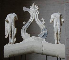 | Keywords: Aphaia central crowning Glyptothek Munich 93-94.jpg Westliche Firstbekrönung des Aphaiatempels Palmettenbaum frankiert von zwei Mädchenstatue um 505-500 v Chr Central crowning of the west pediment of the Temple of Aphaia Palmette tree and two young women ca 505 “500 BC Couronnement central du fronton ouest du temple d'Aphaia Arbre à palmettes et deux jeunes filles v 505-500 av J -C H 84 cm Museum Glyptothek Munich Room 7 Saal der Westgiebelgruppe des tempels von Ägina object history credit line Figures of the pediments of the Temple of Aphaia were found in 1811 and acquired in 1813 by Ludwig I of Bavaria for the Glyptothek accession number Inv 93 94 User Bibi Saint-Pol own work 2007-02-08 other versions Statues of girls West pediment of the temple of Aphaia Glyptothek Munich - Room 7 Roof decoration |