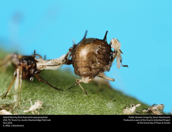 Keywords: USA, TX, Travis Co., Austin, Brackenridge Field Lab 02.ii.2016 A. Wild, J. Marchment entomology aphids hymenoptera hemiptera aphidae parasitism braconidae parasitoid biologicalcontrol parasitica aphidmummy