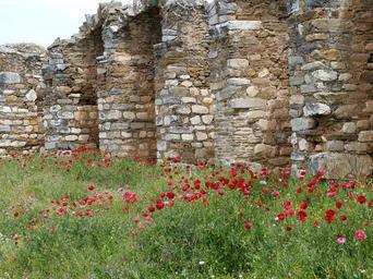 Keywords: aphrodisias antique antiquity temple sculptor temple complex places of interest tourism roman historically stadium wall meadow poppy red poppy wild flowers summer meadow pointed flower red