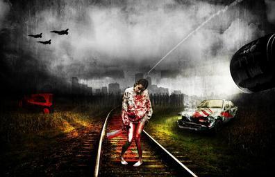 Keywords: apocalypse zombie death undead bloody injured horror human shadow photomontage accident light monster setting bombing woman girl shadow play blood undeath atomic bomb caos