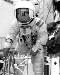 | Keywords: apollo 13 apollo13 blackandwhite monochrome black and white "KSC, FL -- Fred W. Haise Jr., Apollo 13 LMP, participated in a walk-through of the EVA timeline in the Flight Crew Training Building here today. Haise is deploying the tool carrier used on the lunar surface. Apollo 13, scheduled for launch from Complex 39's Pad A no earlier than April 11, involves a revisit to the lunar surface with the LM to land on the Moon's rugged Fra Maure region." -- caption for NASA photo No. 108-KSC-70P-48, release date January 28, 1970. "KSC, FL -- Fred W. Haise Jr., Apollo 13 LMP, participated in a walk-through of the EVA timeline in the Flight Crew Training Building here today. Haise is deploying the tool carrier used on the lunar surface. Apollo 13, scheduled for launch from Complex 39's Pad A no earlier than April 11, involves a revisit to the lunar surface with the LM to land on the Moon's rugged Fra Maure region." -- caption for NASA photo No. 108-KSC-70P-48, release date January 28, 1970. |