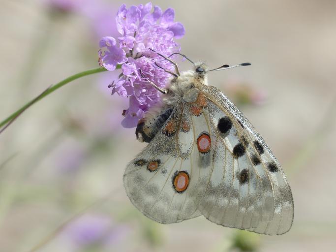 Keywords: apollo butterfly apollofalter parnassius apollo threatened strictly protected protected insect butterflies swallowtail butterflies papilionidae white black spotted field scabious blossom bloom pointed flower purple violet knautia arvensis meadows scabious sewing kisselchen field scabiosa pincushion flower kardengewaechs dipsacoideae pincushion flower scabiosa plant