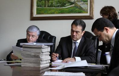 Keywords: people indoor Presidente Valdir Rossoni (PSDB) e 1º secretário Plauto Miro (DEM) divulgam relatório sobre irregularidades nas aposenatorias da Assembleia. Foto: Nani Gois (crédito obrigatório) Presidente Valdir Rossoni (PSDB) e 1º secretário Plauto Miro (DEM) divulgam relatório sobre irregularidades nas aposenatorias da Assembleia. Foto: Nani Gois (crédito obrigatório)
