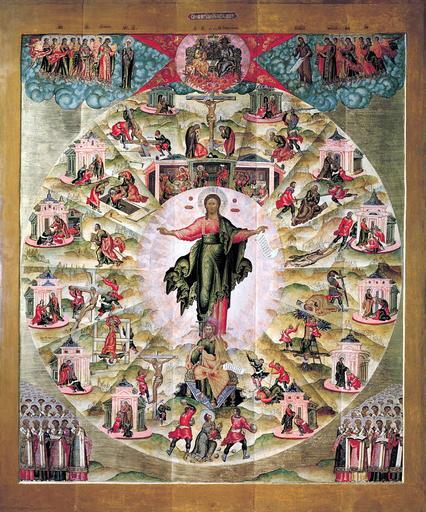 Keywords: ApostleFedorZubov.jpg ru «Апостольская п оповедь» - сложная многофигу ная иконог афическая композиция имеющая в цент е остовую фигу у Х иста ок уженную в секто ах к уга сценами п извания служения и кончины апостолов Икона из Я ославского музея-заповедника en Ministry of the Apostles a complex multi-figure icon with a full-height image of Jesus Christ surrounded by sectors with scenes of His disciples' calling ministry and martyrdom Icon from the Yaroslavl Museum Preserve http //nesusvet narod ru/ico/icons/u_011 htm Fyodor Zubov / Фёдо Зубов 1689 1660 PD-old-100 Fyodor Zubov Icons of apostles Jesus and apostles 1660 paintings from Russia Christ icons Passion of Apostles