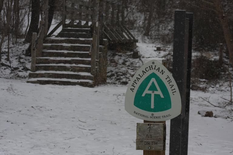 Keywords: Appalachian Trail Sign snow trail bridge winter