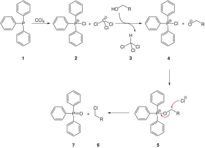 Keywords: Appel-Reaktion-V1.svg de Umsetzung von Alkoholen in Alkylhalogenide own Faynara 2010-05-27 Appel reaction