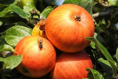 Keywords: apple apple tree red fruit kernobstgewaechs leaves autumn insect wasp