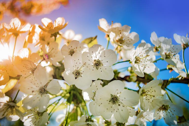 Keywords: apple blossom colorful white petals green sunny spring nature garden flower apple tree blooming outdoor fruit bloom plant blossoming branch springtime happiness happy