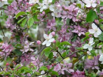Keywords: apple blossoms blütenmeer blossom bloom apple tree white bloom pink red violet leaves tree road spring beautiful malus smell highlight highlighted especially extra