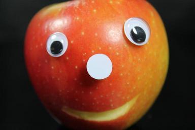 Keywords: apple face eyes nose fruit figures bite bite off cheerful healthy pleasure delicious red black keck funny nutrition eat food edible laugh smile