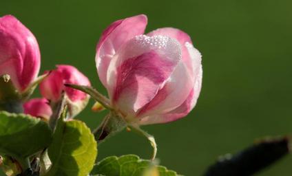 Keywords: apple tree blossom apple tree apple blossom blossom bloom spring white pink branch closed open dewdrop wet leaves