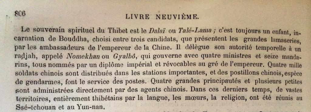 | Keywords: appointment of the dalai lama 1876 translation process of appointment old document photo page number 806 ninth book general geography louis grégoire garnish editions brothers paris france this book is a reference published before the controversy between china and tibet buddhism buddhist man religion faith religious |