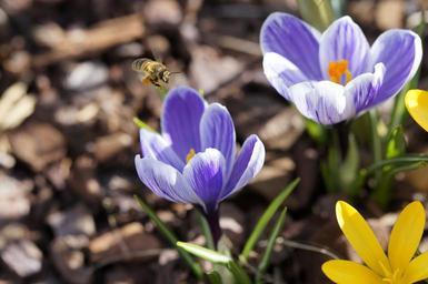 Keywords: approach bee in the approach pollen blossom bloom insect pollination crocus spring collect pollen collect bloom flowers