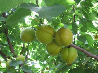 Keywords: apricots green fruits trees branches leaves leafy greenery plants stems flora foods edible nutritious raw snacks desserts natural healthy unripe vegetation gardens gardening fruiting juicy fresh growing cultivation harvesting